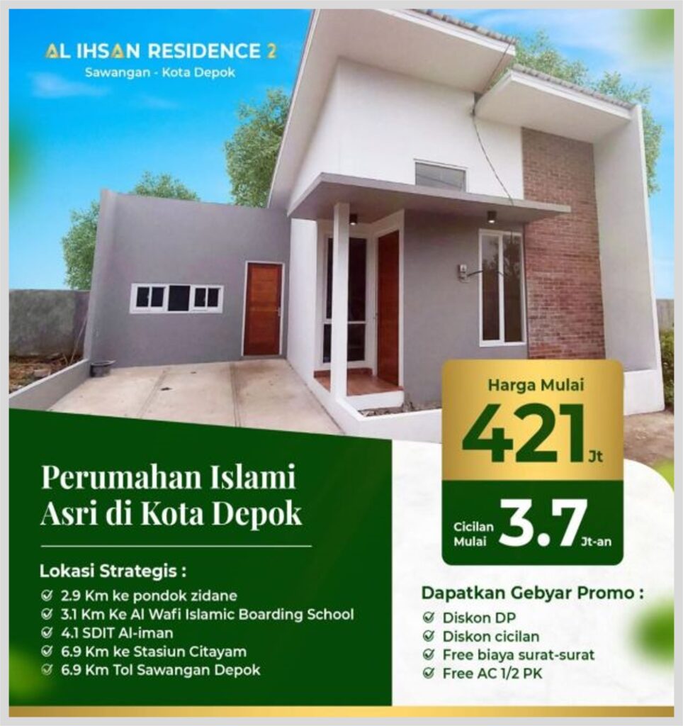 Alhamdulilah perumahan syariah sawangan depok kini hadir dengan konsep one gate sistem. Sebelumnya perumahan ini telah sukses dengan Al-Ihsan Residence Bojongsari Depok dan kini hadir dengan Al-ihsan 2 Residence depok.