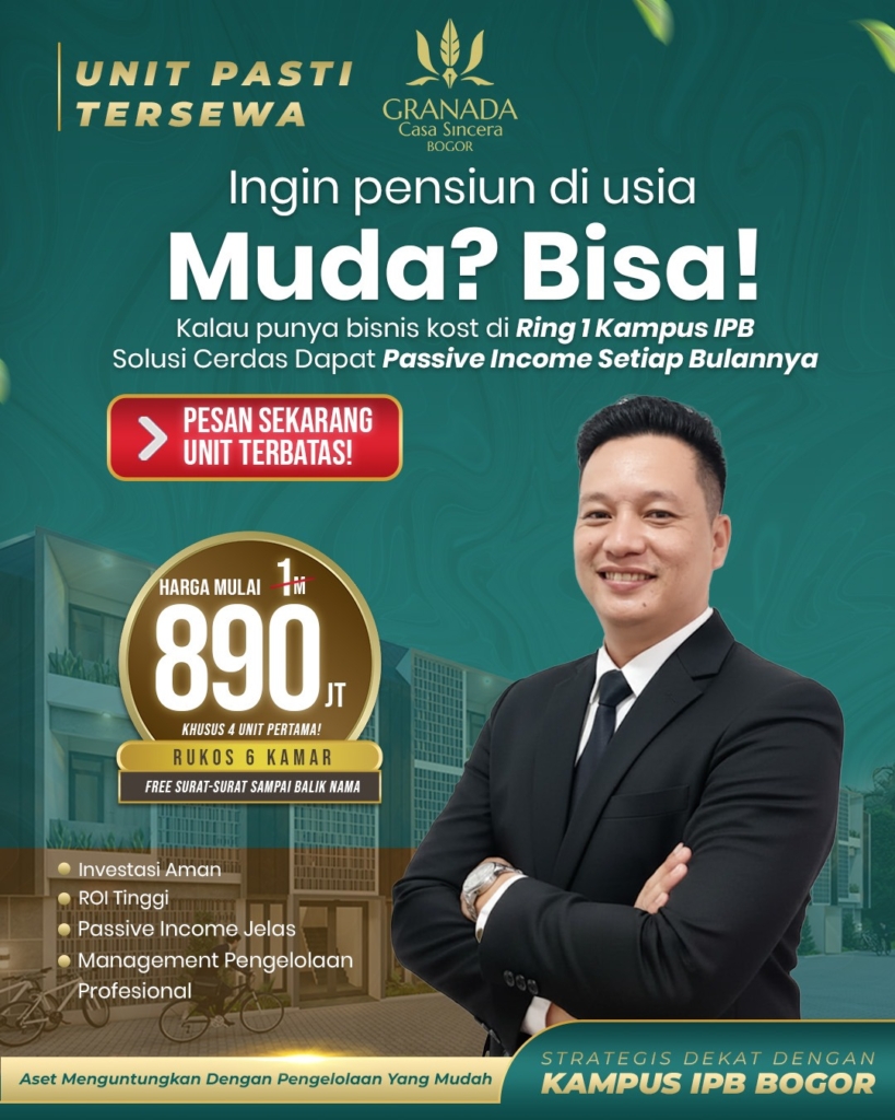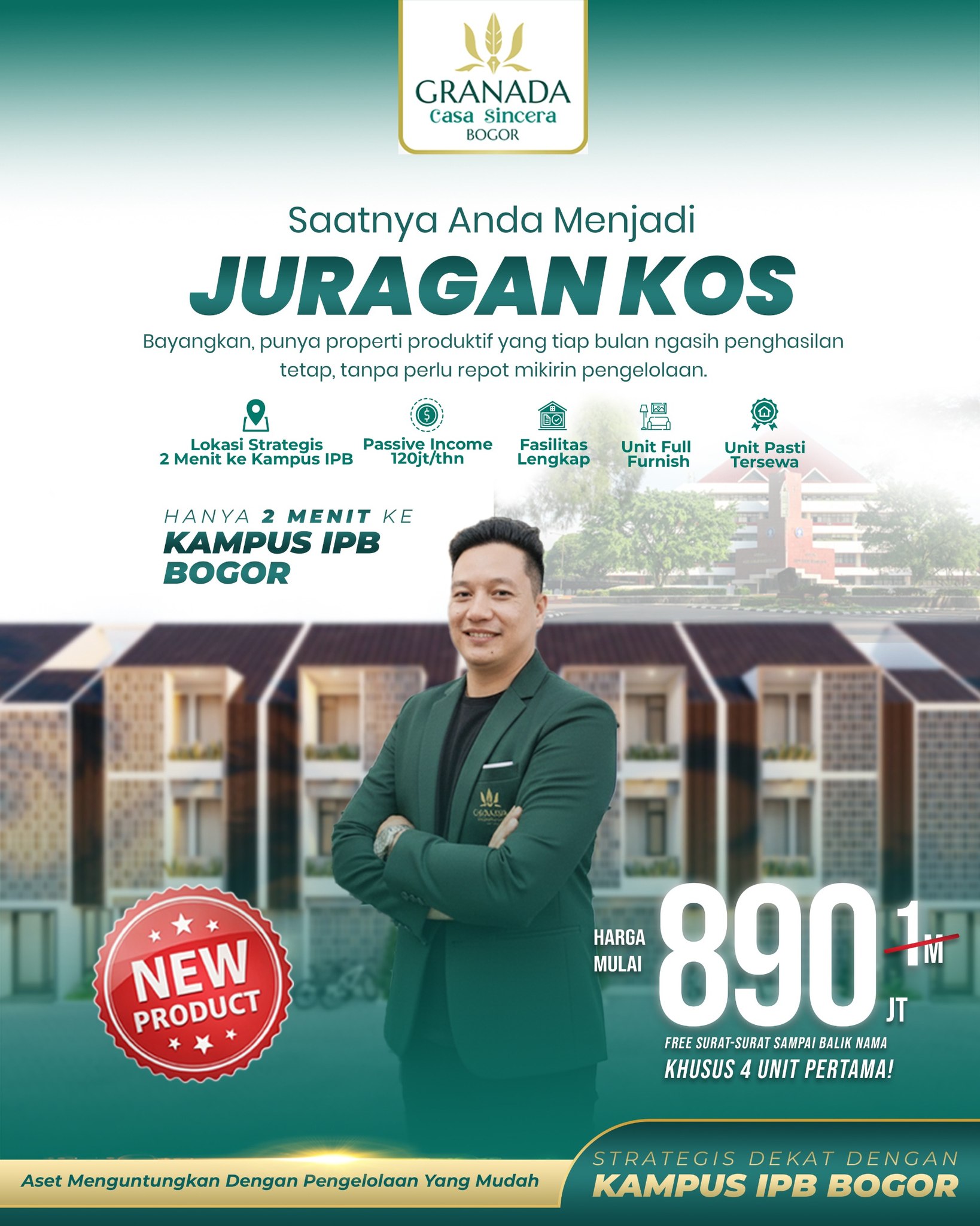Granada Casa Sincera menawarkan peluang investasi yang aman dan menguntungkan dengan konsep hunian kost modern minimalis di dekat Kampus IPB. Persiapkan masa pensiun Anda dengan investasi yang memberi keuntungan jangka panjang!