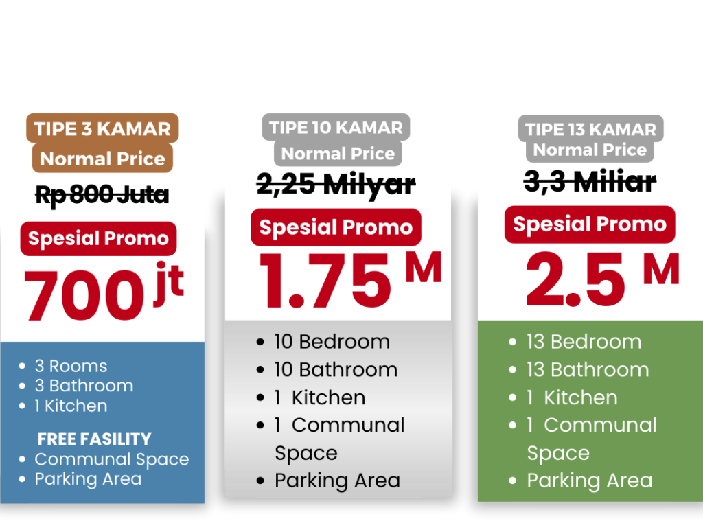 Bingung cari peluang investasi yang profitable dan AMAN ? Investasi rumah kos adalah pilihan tepat. Dapatkan 3 keuntungan sekaligus, yaitu :