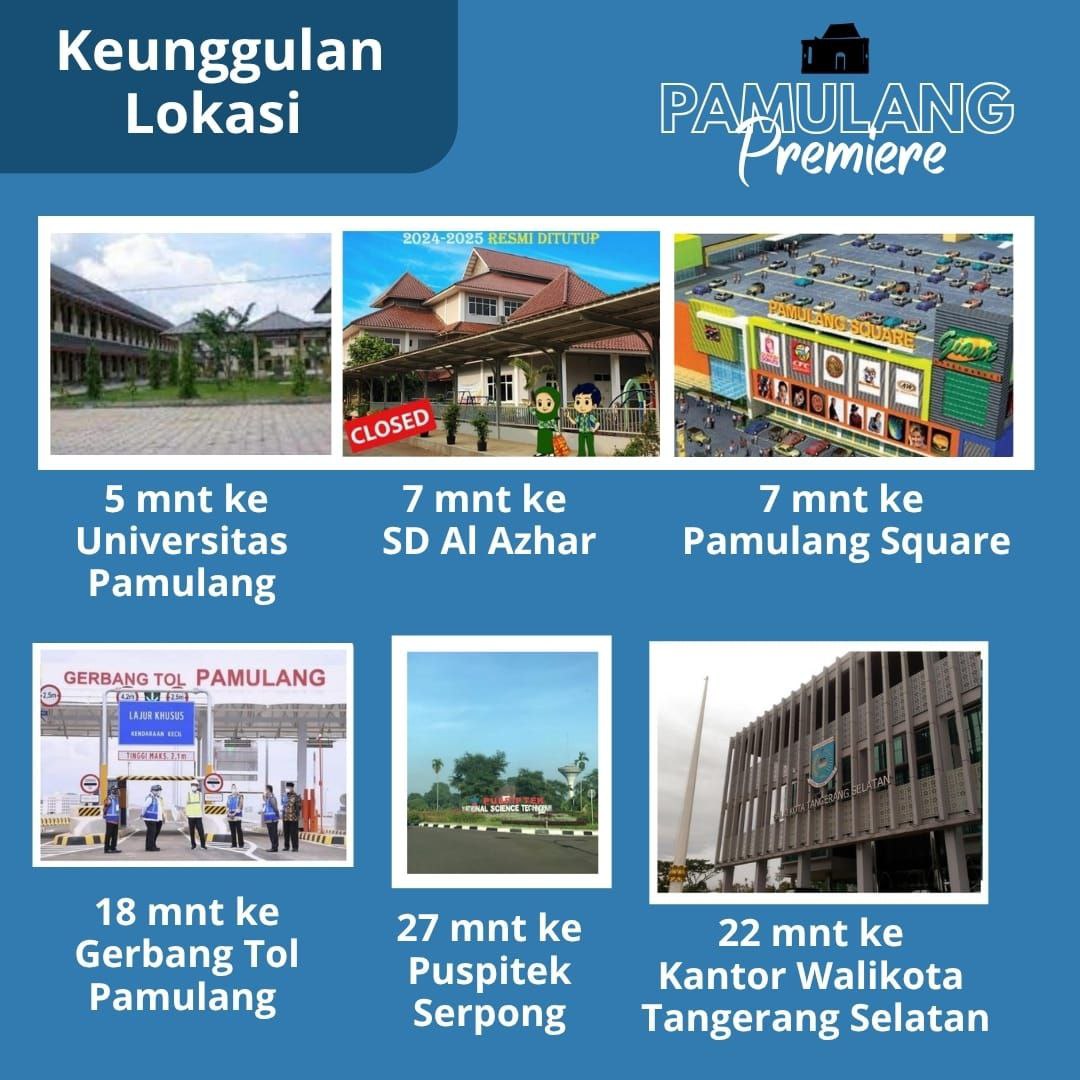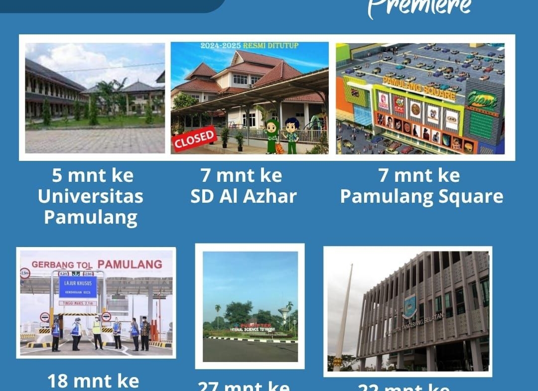 Cocok untuk keluarga muda atau akademisi, Pamulang Premiere hanya berjarak 600 meter dari Unpam Kampus 3 dan 1,9 km dari kampus utamanya. SD Islam Al Azhar yang berjarak hanya 1 km juga menjadikan kawasan ini sangat ideal bagi keluarga dengan anak usia sekolah.