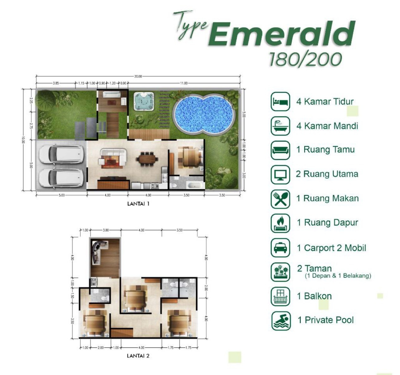 Tersedia villa 2 lantai type 180/200 (type Emerald) ready unit harga cash 2,5 Milyar